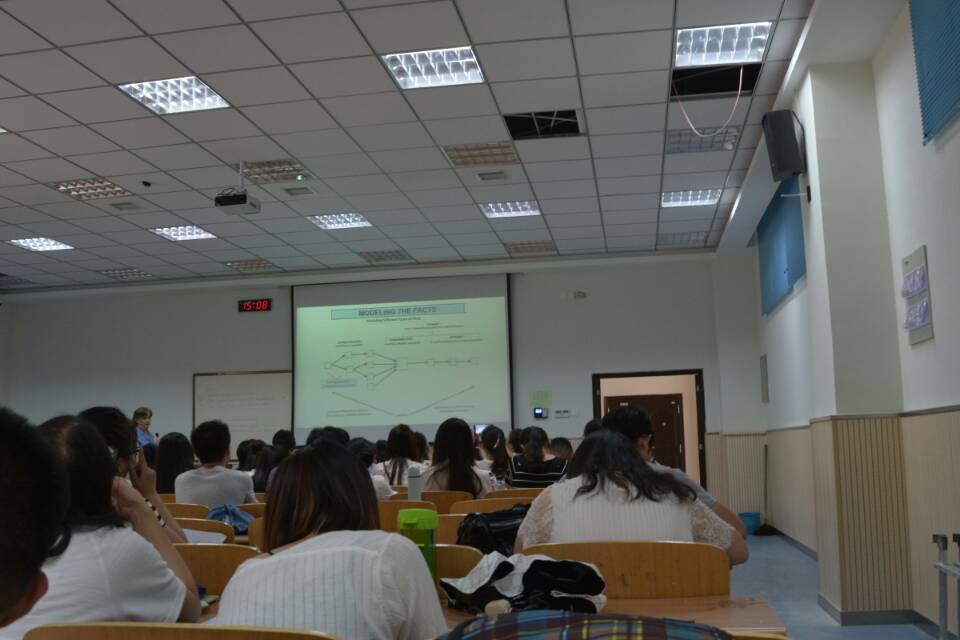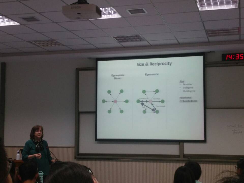 Julie M. Hite教授从要素、关联、结构和内容四个方面阐述了社会网络在组织中的战略性角色,指出社会网络在组织的内部网络、外部网络、组织优势及专业网络中都起着至关重要的作用,并通过现实案例展示了不同组织网络关系的不同结构。她还从行业、领域、问题及背景方面介绍了概念建模的基本内容,并通过具体案例向在座师生详细介绍了概念建模的基本步骤。