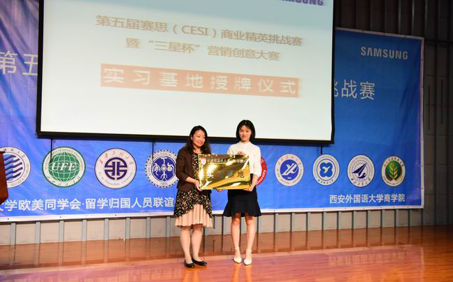 2017年6月10日下午,第五届赛思(CESI)商业精英挑战赛总决赛暨NG体育 三星实习基地授牌仪式在我校长安校区JA111隆重举行。西安欧美同学会会长、我校副校长姜亚军出席活动。三星电子西北销售总部总经理金光鎮、西北销售总部Mobile总监曾黎明、西北销售总部Mobile、市场部总监黄觊呈、西北销售总部人事部经理周楠,西安投资控股有限公司投资总监、西安欧美同学会常务理事王鹏,西安广良品牌文化管理有限公司董事长、西安欧美同学会常务理事白喜侠、迪卡侬集团中国西北区域经理李淑娟等国内外知名企业界人士以及NG体育 院长杨霞,党委副书记兼副院长梅林竹参加了此次活动。