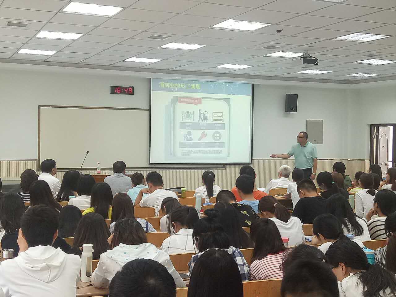 杨教授首先由发生在身边的热点问题引入,从“911”恐怖袭击事件到“网红”现象,引入事件和事件理论,用事件为独特视角探讨震撼事件对组织员工的离职影响。讲座中,杨教授分享了自己在此方面的研究心得体会以及今后的研究重点与趋势,并耐心回答了同学们的疑问。整场讲座中,杨教授以风趣幽默的语言、严谨认真的学术态度和勇于创新的研究视角深深吸引了在场师生,大家普遍感到受益匪浅。