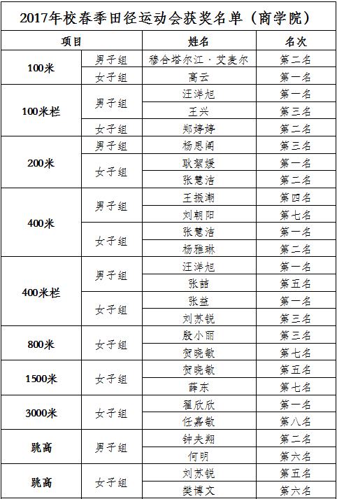 附:2017年校春季运动会NG体育 获奖名单