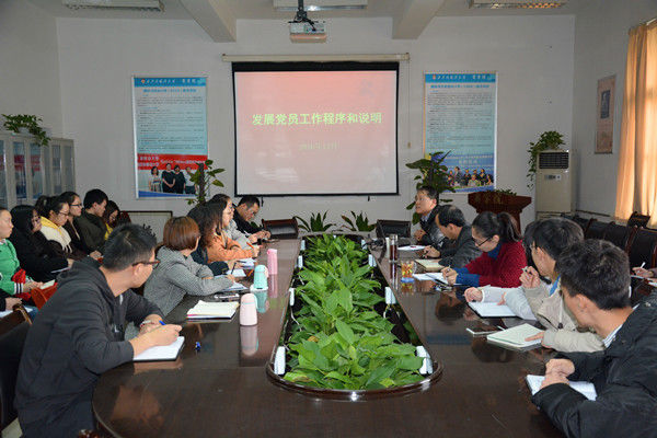 为了进一步加强学院学生党建工作,规范学生党员发展程序,提高党员发展质量,结合目前“两学一做”学习教育的相关要求,12月1日下午两点半,我校组织部·统战部副部长张中旺应邀在学院会议室做了题为《发展党员工作程序和说明》的专题讲座。讲座由NG体育 党委副书记、副院长梅林竹主持。NG体育 党委书记周龙、全体辅导员、各学生党支部书记、委员共同参加了讲座。