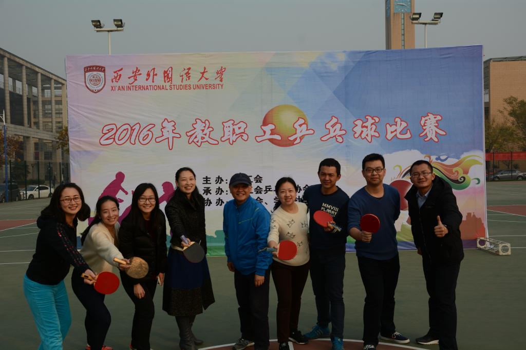 为丰富我校教职工课余文化生活,2016年11月15日下午,学校工会组织举办了我校2016年教职工乒乓球比赛。NG体育 教职工踊跃报名,由NG体育 分会主席梅林竹老师担任领队,郑海平、杨彩霞、王伟、薛芳、康亚波、杨荻、高明、弋甸园等八位老师组成的NG体育 分会代表队参加了此次比赛。