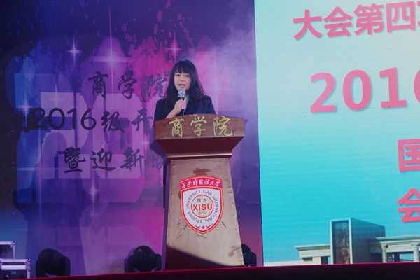 本次典礼在庄严的国歌声中拉开帷幕,学院商务英语专业副主任卢珊老师作为教师代表发言,她告诉同学们要学习,要思考,要有担当,微笑面对每一天。2016级本科国际商务的王振潮以及会计专硕张舒然作为新生代表进行了发言,他们首先表达了对未来学习生活的憧憬,并代表全体新生表达了他们爱院爱校、立志成才的信念。随后,2014级会计ACCA的张慧洁上台发言,向大家分享了自己的大学生活,告诉同学们要提前定好目标,心中有主见,才能不负大学美好的时光。院党委副书记兼副院长梅林竹宣读了新生军训表彰文件,各位嘉宾为在军训中表现突出的集体和个人颁奖。