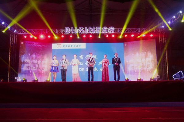 开学典礼结束后,迎新晚会在青春洋溢的开场舞《keep on dancing》拉开了帷幕,唯美的舞蹈《月照天涯》表达了对家乡的思念,刚劲有力的舞蹈《红军桥》展示了红军战士的英勇豪气,向红军长征胜利八十周年献礼,一场穿越时间界限的时装秀向大家展示了跨越不同时代的美,让人目不暇接,连连赞叹。商院男子天团F5和女声组合带来的歌曲,也引发了全场阵阵掌声。诗朗诵《相约西外,圆梦商院》,一字一句间,勾起了每个人对青春的回忆,对大学生活的憧憬。晚会在一曲欢快的《GOOD TIME》中落下帷幕。