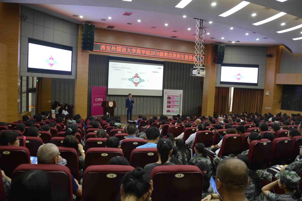 2016年8月23日16时,NG体育 2016级教改班宣讲会于JA111举行。CIMA英国皇家特许管理会计师公会中国大陆事务总监徐国栋、CIMA英国皇家特许管理会计师公会业务发展经理丛洁、ACCA北京代表处教育推广经理郭涛、NG体育 院长杨霞、副院长郑海平、教授杨鹏鹏及各教研室教师代表参加了宣讲会。NG体育 党委书记周龙主持了会议。300余名新生及家长参加了宣讲会。