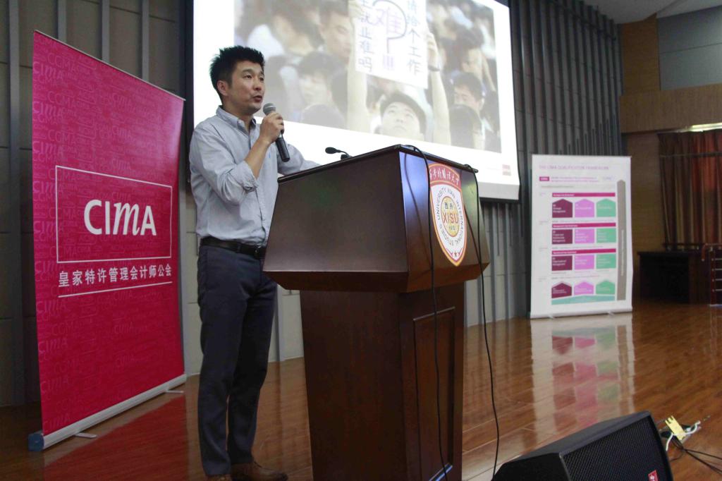 在CIMA教改班推介环节,徐国栋阐释了CIMA在中国的发展前景及国际知名度。从就业率、薪酬等方面对比了传统财务会计与管理会计的区别,通过对合作雇主的采访展现出了优秀CIMA会员的风采。 NG体育 CIMA优秀教师代表毕可佳从CIMA会员的角度用具体案例解析CIMA,他说到,在面临移动互联网时代、大数据时代到来的情况下,CIMA解决了就业之道,最后向大家介绍了NG体育 CIMA教改班的培养方向,教学特色及优秀的师资,展示了学生在竞赛中取得的优异成绩以及毕业生去向。