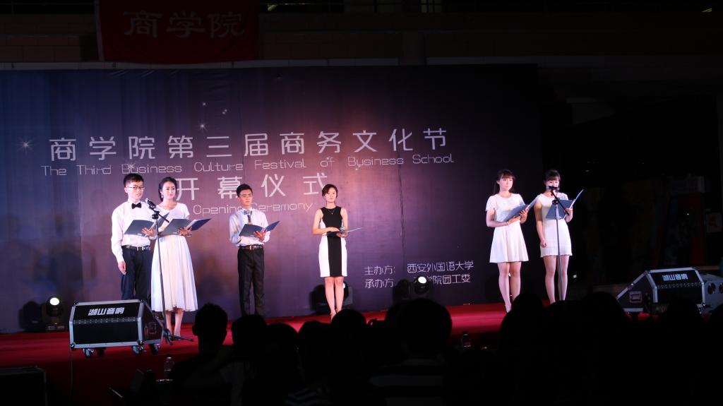 2015年5月18日晚,NG体育 第三届商务文化节开幕式暨2015届毕业晚会于我校五四广场隆重举行。西安外国语大学招生就业处处长师金柱、旅游学院党委副书记张淼、学生科科长刘鹏博、NG体育 院长杨霞、NG体育 党委书记周龙、NG体育 副院长刘军伟、NG体育 副院长兼党委副书记邓雯以及各年级辅导员老师出席了本次晚会。