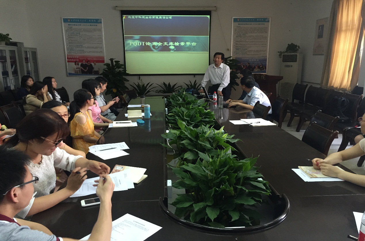 会上,高建斌老师首先介绍了学校图书馆目前电子数据库现状,然后北京中科进出口有限公司陈工程师重点介绍了PROQUEST数据库的使用技巧和应注意的一些问题。图书馆技术部陈主任讲述了如何利用i-reader在校园网之外登陆有关学校电子文献数据库,并进行了详细讲解。本次说明会上,与会老师和同学就平时使用数据库出现的一些问题与图书馆和公司技术人员进行了热烈讨论,对今后文献利用也提出了一些建议。本次说明会使大家深入了解了外文数据库利用的常用技巧,以及平时利用数据库时遇到的问题得到了解决,并希望今后能多举办这样的说明和培训活动。