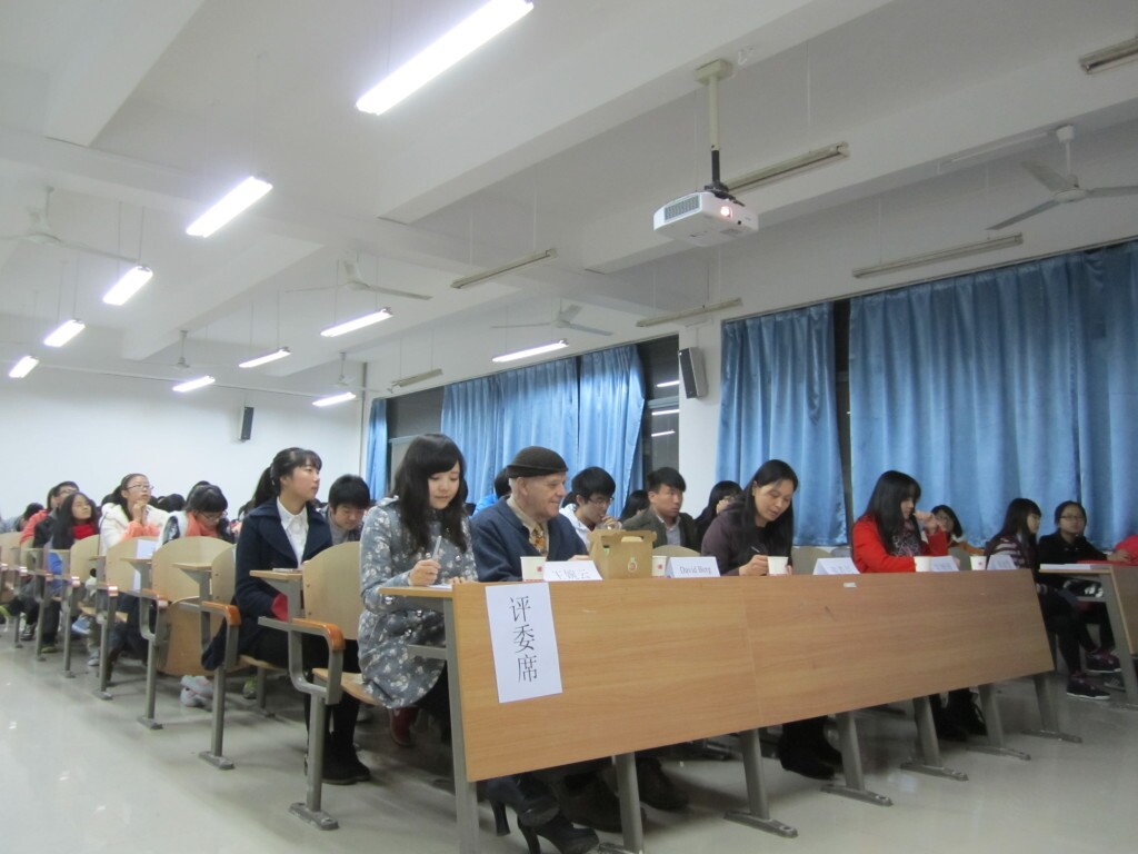 2014年11月18日晚,由NG体育 团工委学生会主办的第11届英语演讲比赛在JA210圆满落下帷幕。本次比赛旨在给热爱英语学习的同学们一个提升英语口语、展示综合能力的平台。决赛现场特邀请到张若月老师、崔淑慧老师、王婉云老师以及外教David Berg担任评委,NG体育 百余名学生到场观摩并学习了此次比赛。