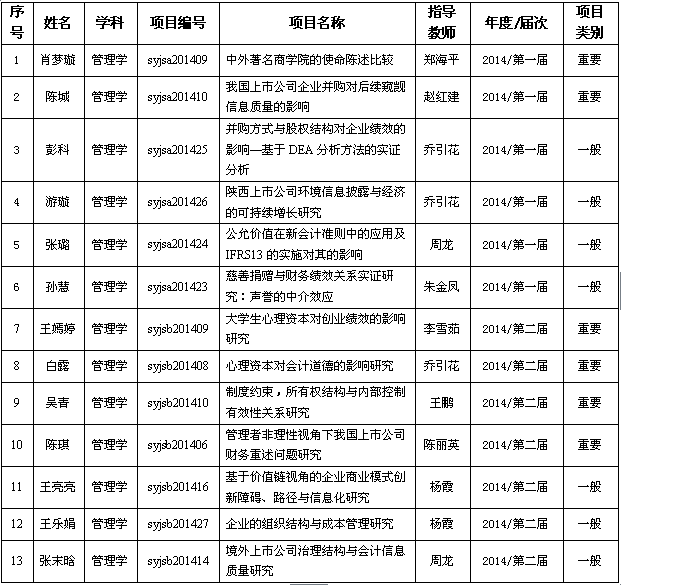 学校2014年度第二届研究生科研基金项目日前揭晓,全校共32个项目获得立项,其中重点项目4项,重要项目9项,一般项目19项。据统计,NG体育 有7个项目获批,其中重要项目4项,一般项目3项,获批项目在数量和层次上均创新高。在此向本届获得立项的研究生同学表示祝贺,并希望能扎实开展研究工作,顺利完成各项研究任务。