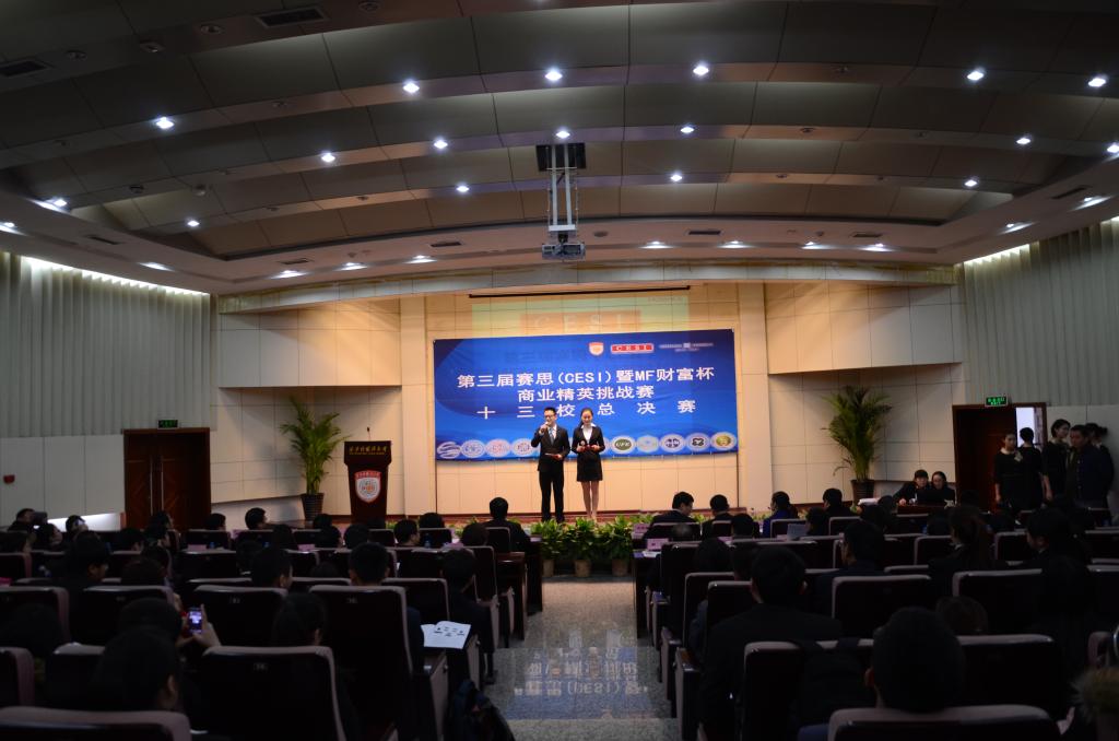 2013年12月8日,由NG体育 主办、香港莫萨克·冯赛卡集团全程赞助的第三届赛思(CESI)暨MF财富杯商业精英挑战赛十三校总决赛在我校长安校区行政楼报告厅隆重举行。总决赛特邀西安阎良国家航空高技术产业基地管委会副主任全秀丽女士、西门子听力集团(中国)北方区高级销售经理封韬先生、SK能源公司中国西区经理冯祥龙先生等多名知名企业嘉宾出席。莫萨克·冯赛卡中国区总经理巩恩光先生、莫萨克冯塞卡亚太区市场营销管理中心总监张蔚先生、中国核工业二四建设有限公司总会计师陈强先生、西安营销学会执行会长周战锋先生、利洁时家化(中国)有限公司北中国区销售总监关卜先生等担任了比赛评委。学生处处长郑锐华、教务处副处长辛子牧、保卫处副处长朱昭鹏、团委书记单升军、国际关系学院党总支书记陈小兵、经济金融学院副院长李兵、国际学院副院长兼党总支副书记蓟光辉以及NG体育 全体领导都莅临现场观看了比赛。陕西师范大学、西安工业大学、西安财经学院、西北工业大学等高校也派出老师全程观摩了比赛。