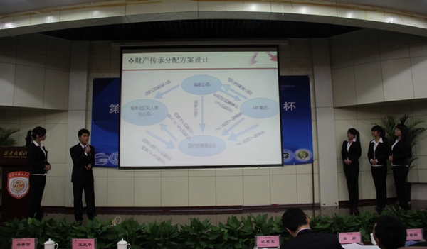 党委副书记王天平代表我校致辞,他指出举办赛思比赛既是实现我校创新型商务人才培养目标的重要举措,也是实现商务理论教学与实践相结合的有效方式,同时还表达了对参赛选手们的真诚期许。莫萨克·冯赛卡集团中国区总经理巩恩光先生代表本次活动的赞助方也对我校举办赛思比赛的积极意义予以了高度肯定,并对将商务理论教学置于企业实践之中的作法表示认同。本次赛思比赛共历时八个月,从四百多支队伍中脱颖而出的西安交通大学、青岛大学、西北工业大学、陕西师范大学、西安电子科技大学、长安大学、西北大学、西安财经学院、陕西科技大学、西安工业大学、西安外国语大学、西安邮电大学、西北农林科技大学等十三所高校代表队同台进行了激烈的角逐。在紧张而激烈的比赛过程中,我校代表队以周详的财产规划以及合理的财产分配方案获得了季军。本次比赛的冠军由长安大学代表队获得。