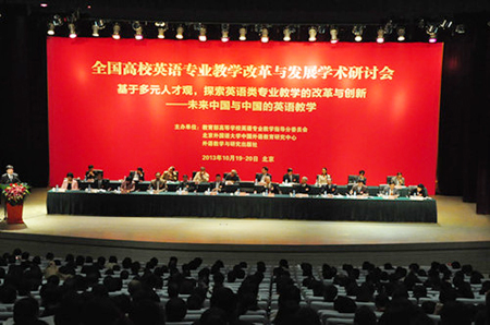 2013年10月19日至20日“全国高校英语专业教学改革与发展学术研讨会”在北京外研社国际会议中心召开。本次研讨会由教育部高等学校英语专业教学指导分委员会、北京外国语大学中国外语教育研究中心、外语教学与研究出版社共同举办,教育部门领导、全国外语教育界专家学者、高校外语院系负责人及骨干教师共1000余人参加此次盛会。NG体育 副院长刘军伟副教授、商务英语教研室副主任卢珊老师应邀参加了此次学术研讨会。