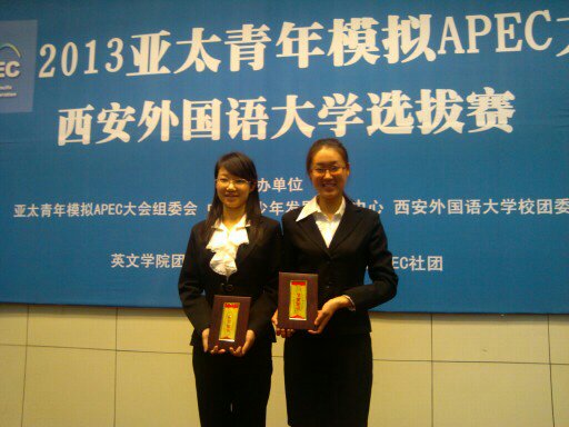 2013年5月20日,2013亚太青年模拟APEC大会西安外国语大学选拔赛在行政楼报告厅如期举行。