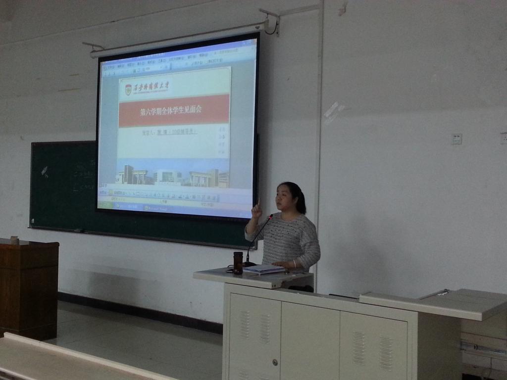 新学期伊始,为调动Elite-5(商英、CIMA、ACCA五个尖兵班)全体同学积极性,更为让大家在大三下学期这个转折点更好地选择自己的人生方向并为之奋斗,本学期Elite-5全体学生见面会于2013年3月7日下午在SA102召开。本次会议由2010级辅导员魏婧老师主持,参加会议的有Elite-5全体170名学生。