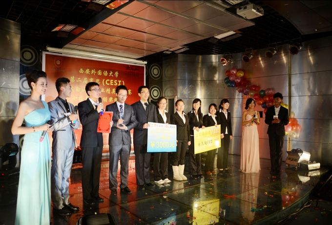 第二届赛思商业精英挑战赛暨太白山杯营销创意大赛总决赛颁奖晚会于11月24日晚19时在西安外国语大学长安校区新多功能报告厅隆重举办。应邀出席的嘉宾有太白山国家森林公园营销中心主任梁超先生,太白山国家森林公园营销中心主任助理靳凤女士、吴怡蕾女士,西安市场营销学会会长周战锋先生,中铁一局集团有限公司财政部部长陈强先生,利洁时家化(中国)有限公司北中国区销售总监关卜先生,西门子听力集团北方区高级销售经理封韬先生,博士伦西北区经理李震先生,SK能源有限公司西区销售总监冯祥龙先生,莫萨克.冯赛卡亚太地区创始人兼主席张晓冬先生,我校教务处处长、NG体育 院长李雪茹老师、副院长杨霞老师和党总支副书记周龙老师等。颁奖晚会现场氛围热烈,精彩绝伦的节目让颁奖晚会活力四射,突显了NG体育 紧跟商业时代脚步的一大亮点。