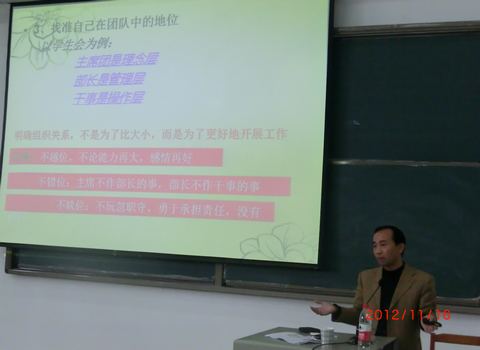 为提高学生干部的综合素质,培养学生干部自我管理、自我教育、自我提高的能力,NG体育 于2012年11月16日中午在SD107开展了第二期学生会干部培训会。本次培训由NG体育 党总支副书记周龙老师主讲。