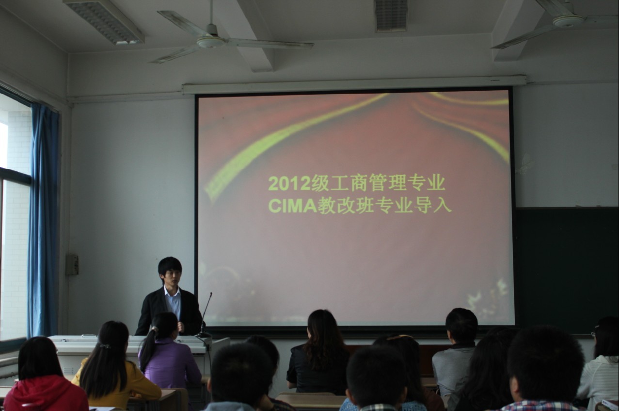 2012年9月25日上午,2012级首届工商管理(CIMA方向)教改班专业导入会在长安校区教学楼E506顺利召开。本次会议由NG体育 工商管理教研室毕可佳老师主持,NG体育 教学副院长杨霞副教授,工商管理教研室主任郑海平副教授,工商管理教研室全体老师,以及工管CIMA方向教改班同学参加了此次会议。