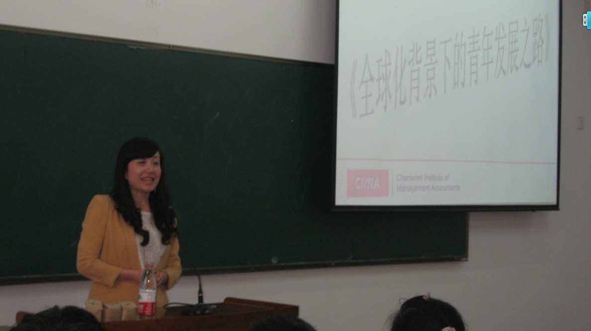 我校知名校友、CIMA英国特许管理会计师公会北亚区总裁李颖女士于2012年9月22日下午为我校NG体育 CIMA方向教改班学生举 “全球化背景下的青年发展之路”讲座。讲座由NG体育 副院长杨霞副教授主持,NG体育 CIMA教学团队、工商管理CIMA及商务英语CIMA方向教改班全体同学参加。